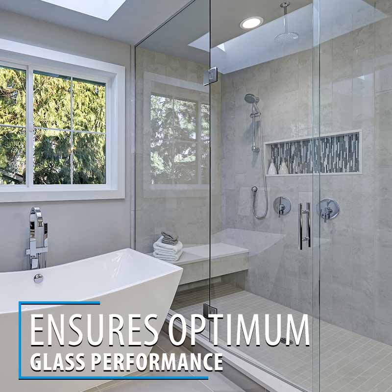 For glass surfaces including shower doors, glass railings, windows, and mirrors, download the PDF guide here.