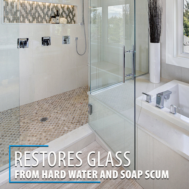 - Restores glass from hard water stains