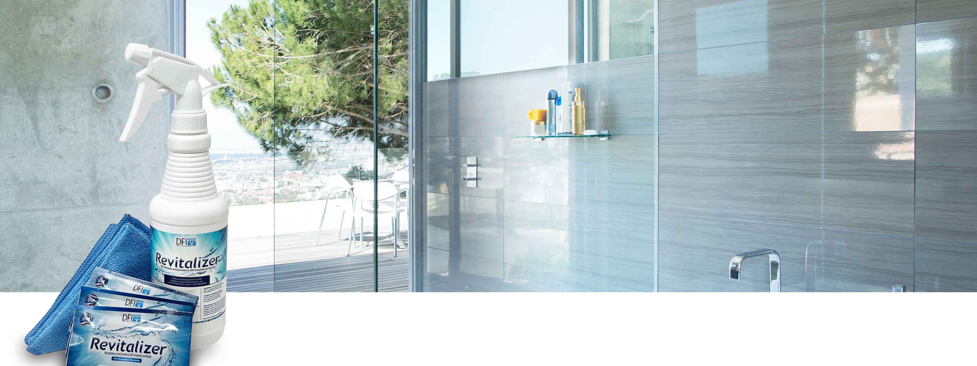 Over time, some glass surfaces inherently take more abuse than others and may be exposed to damage from mineral deposits, soap scum, lime scale, and more. DFI’s Revitalizer™ is used to maintain the beauty of such surfaces, specifically treated with DFI’s protective coatings, helping to keep them water-repellent, easier to clean, and optimally performing.